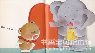 小熊在骑小汽车时放了一个屁,我在带笑宝看书时用了很夸张的方式模拟了一下,“咕~”,笑宝饶有兴趣地期待着下文。咦?小熊怎么啦?哦,原来他要拉粑粑啦!那得赶紧找到厕所才可以哦。我们去帮他找找吧!