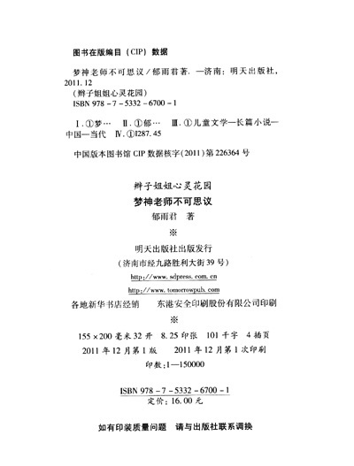 本书是“辫子姐姐郁雨君心灵花园”第12本——《梦神老师不可思议》。