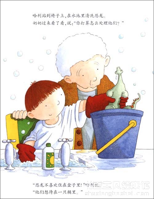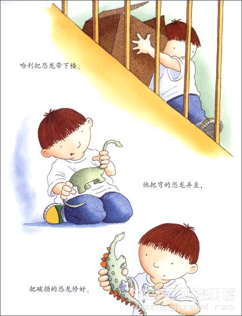 哈利帮奶奶打扫阁楼时,有一个奇妙的发现——恐龙!他小心地把恐龙修理好、洗干净、弄直。从此,哈利走到哪里,恐龙就跟到哪里。有一天,他最爱的恐龙走丢了!哈利如何对失物招领处的人证明,这些恐龙是他的呢?