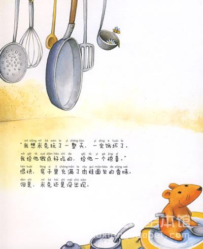 米克度过了开心的一天。今天的最后一件事就是洗干净他身上的脏东西。妈妈说他可以不洗澡。但如果那样的话,他就一直穿着黏黏的衣服,脸上沾满冰淇淋,还得睡在硬硬的地板上!这样特殊的一天会留在米克的脑海里多长时间呢?