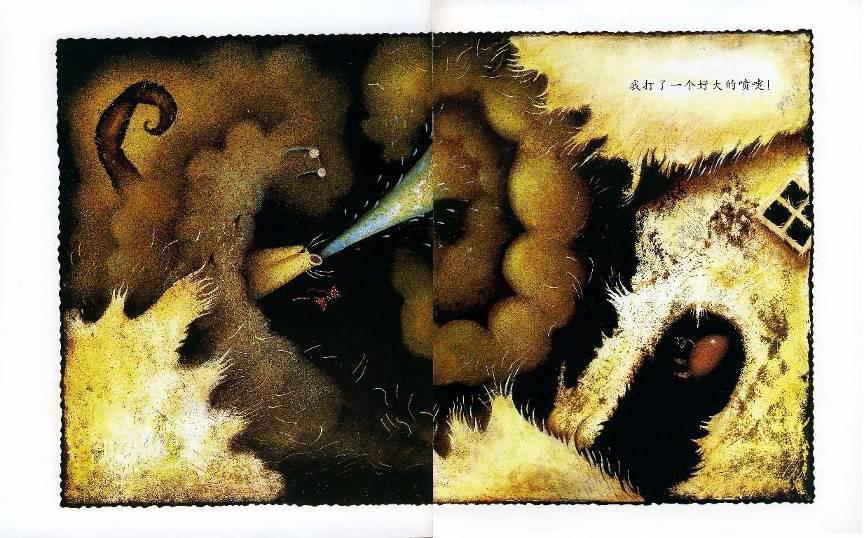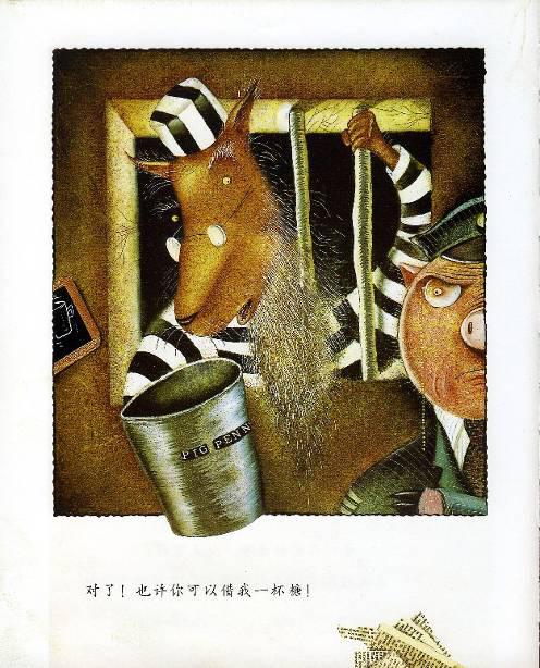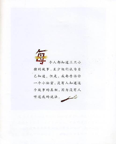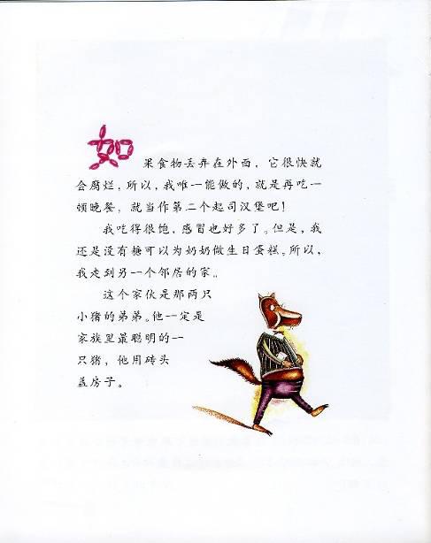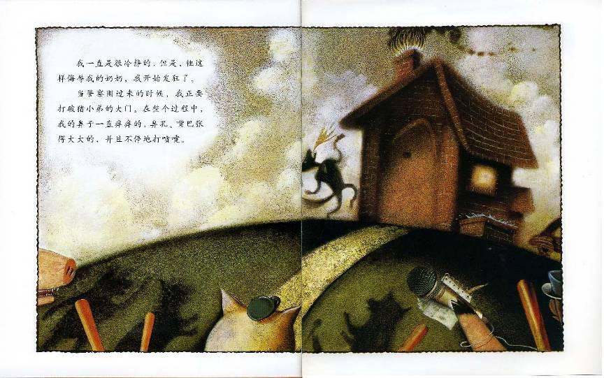 记者们知道我把两只小猪当作晚餐吃掉了。他们都认为,一个生病的家伙要去借一杯糖,这种事听起来一点了不刺激,所以,他们就把故事夸大了、扭曲了:“一只大野狼狠狠地吹、吹、吹倒了小猪的房子。”从此以后,他们就认定了我是“坏蛋大野狼”。
