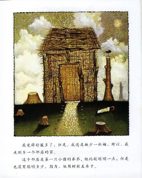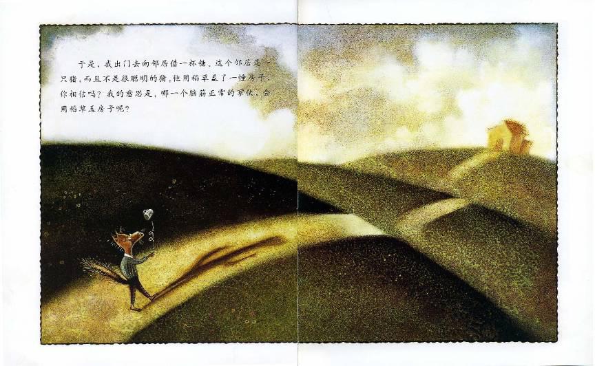 于是,我出门去向邻居借一杯糖,这个邻居是一只猪,而且不是很聪明的猪。他用稻草盖了一幢房子,你相信吗?我的意思是,哪一个脑筋正常的家伙,会用稻草盖房子呢?