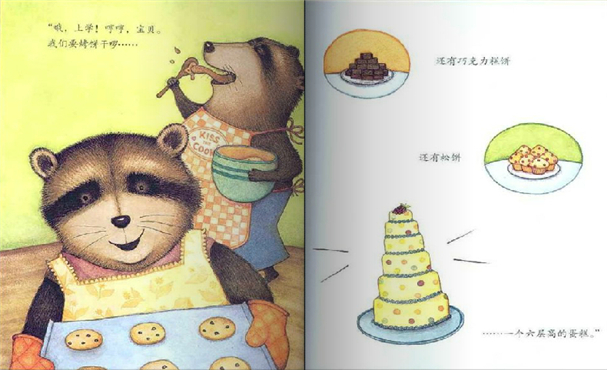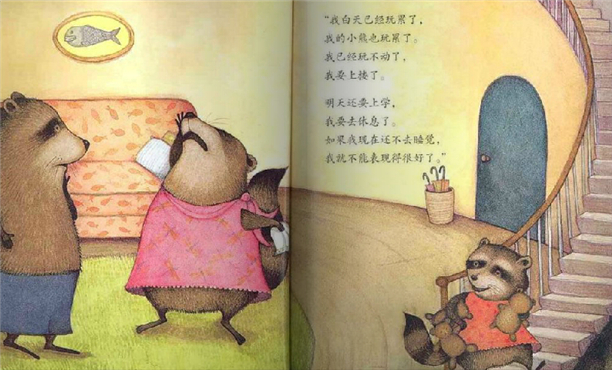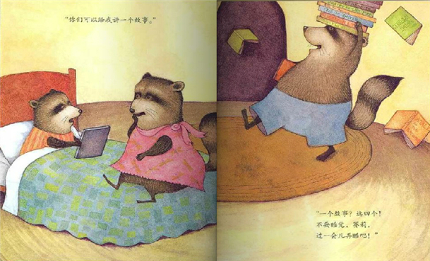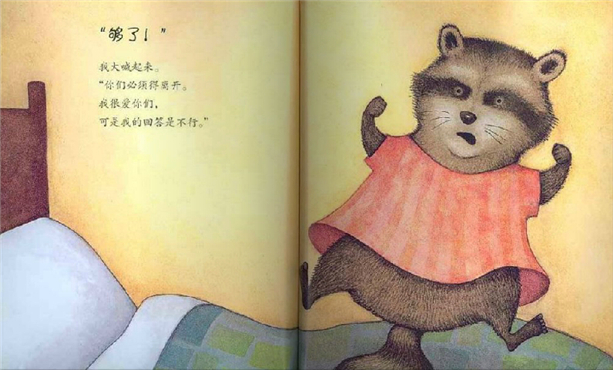 这是一本以浣熊为主角的图画书。浣熊尾长,有黑白环纹,筑巢于树洞,昼眠夜出,杂食。而浣熊的这些特征和习性正是画家创作的基点,这说明图画书的创作不是天马行空,依然需要现实依据。