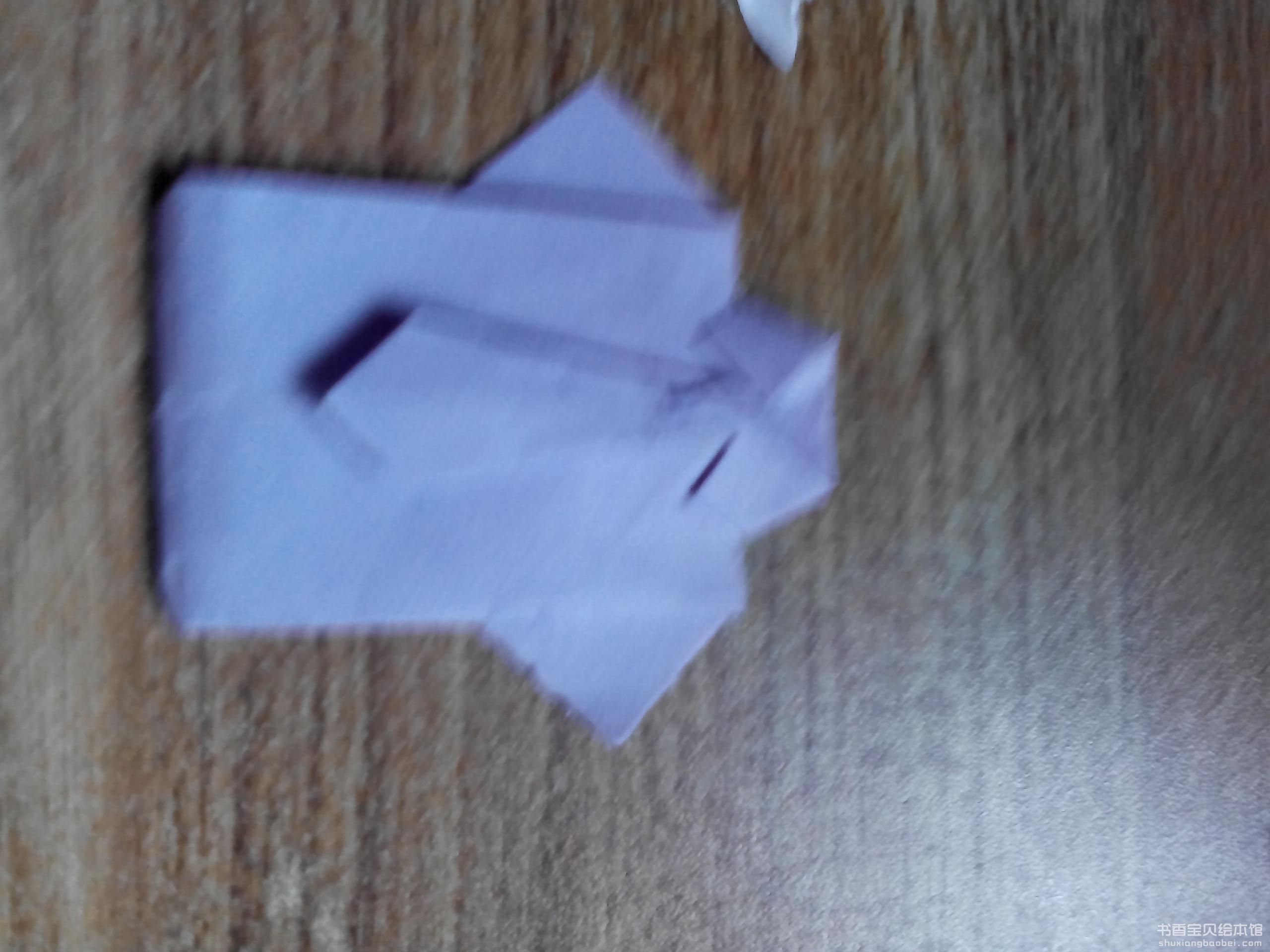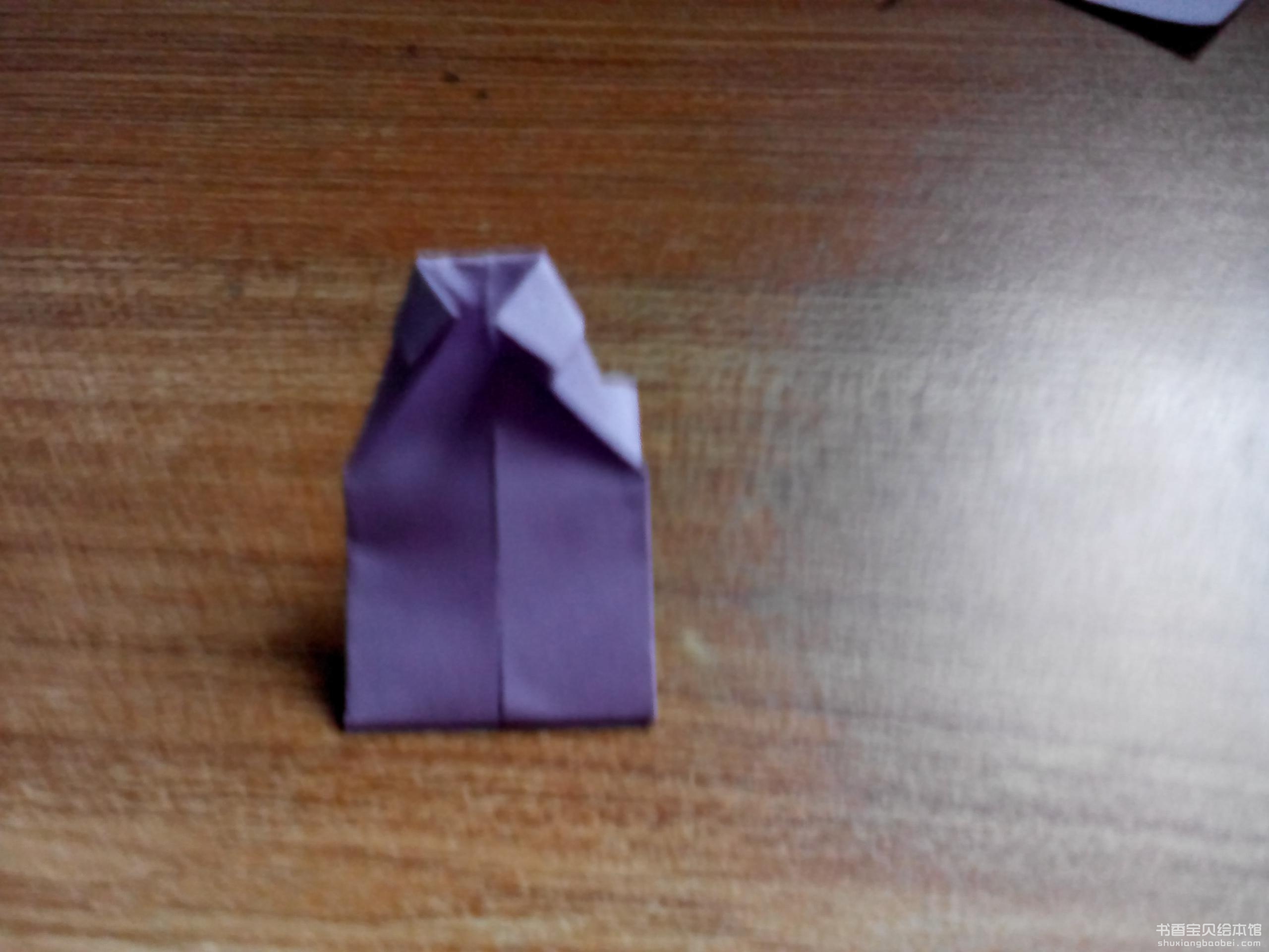 5.然后将底部的边折向上一步得到的连各个角的内部,这样,就刚好掖出来了一个领子。