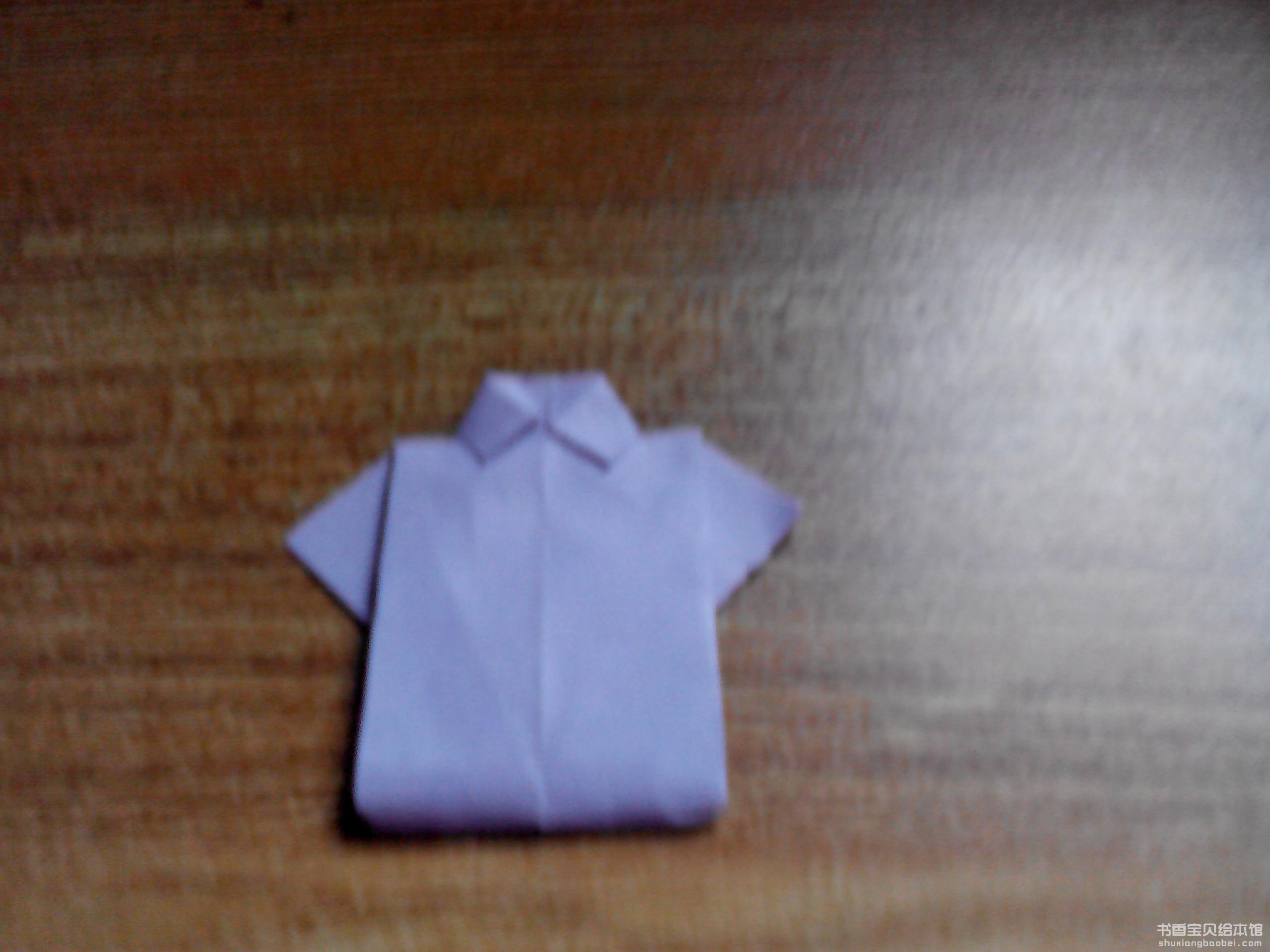 7.再按照第5步那样把底边向上折叠。.这样开一个可爱的小衬衫就制作完成啦。