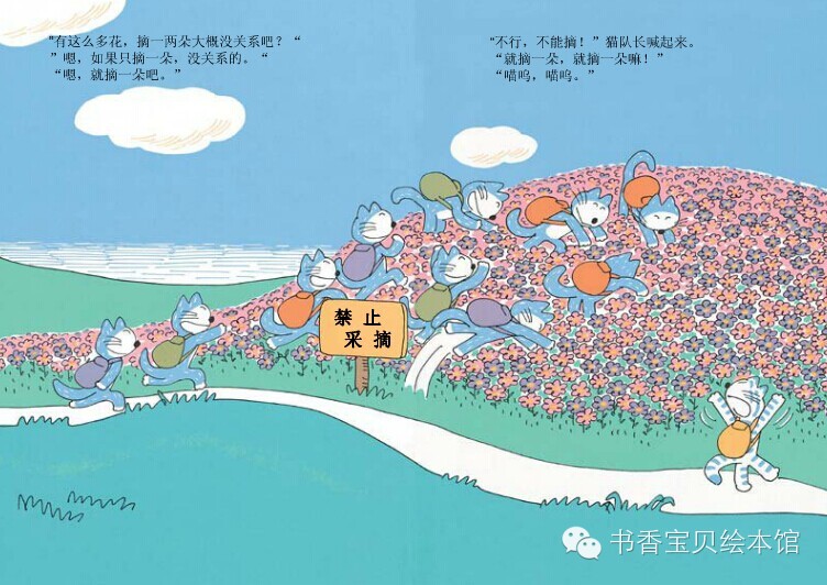 十一只猫一起排队去山坡,山坡上开满了鲜花,还插着一块大牌子:禁止摘花。可是没关系,每人只摘一朵也无所谓;十一只猫一起排队走吊桥,桥上竖着一块大牌子:禁止通行。可是没关系,走一次也无所谓……直到他们遇到了一个大袋子……十一只猫会遇到危险吗?巧妙风趣的情节安排让孩子懂得遵守规则的重要性。