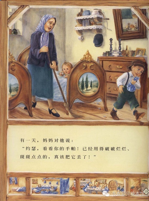 有一天,妈妈对他说:“约瑟,看看你的手帕!已经用得破破烂烂、斑斑点点的,真该把它丢了!”