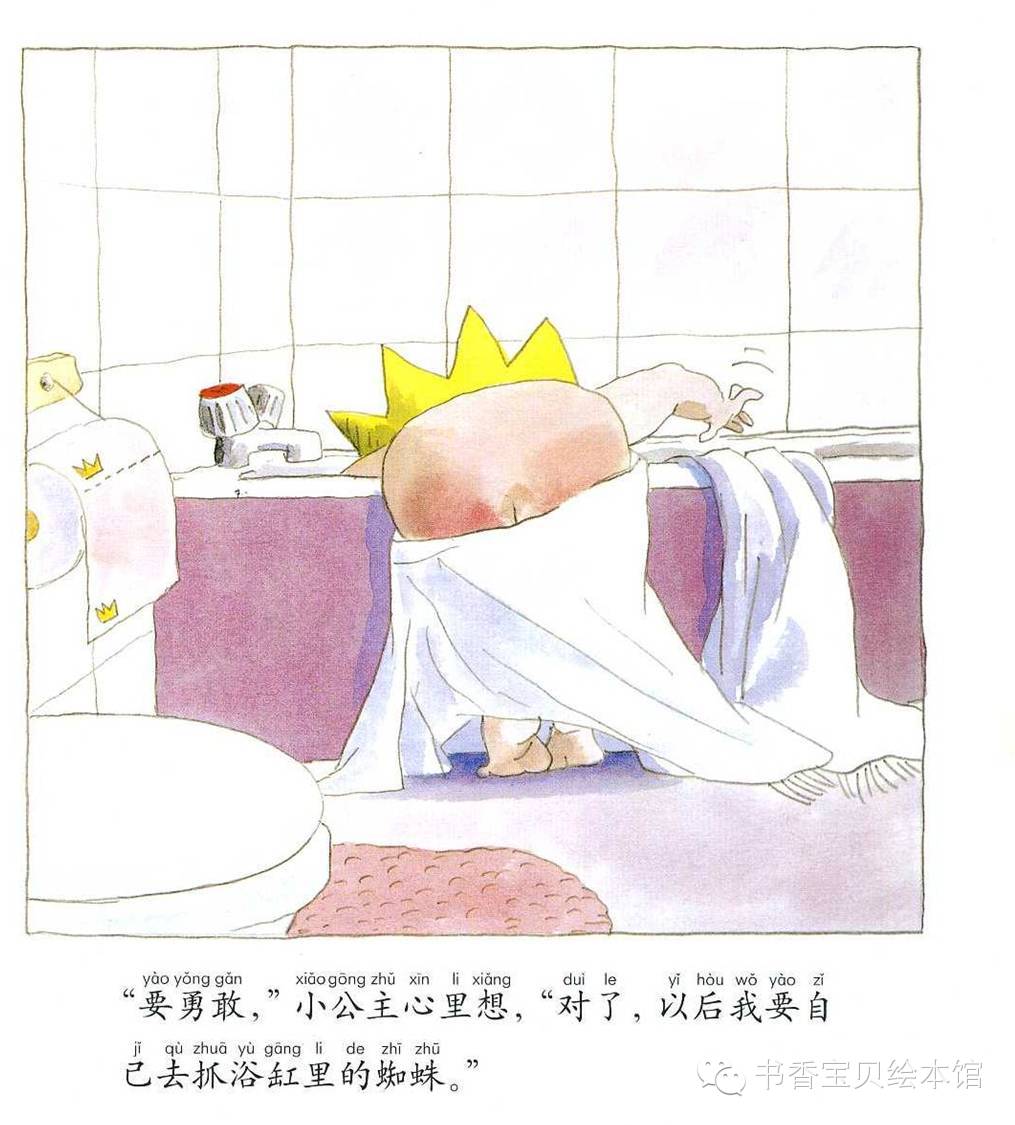 “长大以后最好变成什么样呢?”小公主问。“要勇敢。”大将军说。“要勇敢,”小公主心里想,“对了,以后我要自己去抓浴缸里的蜘蛛。”