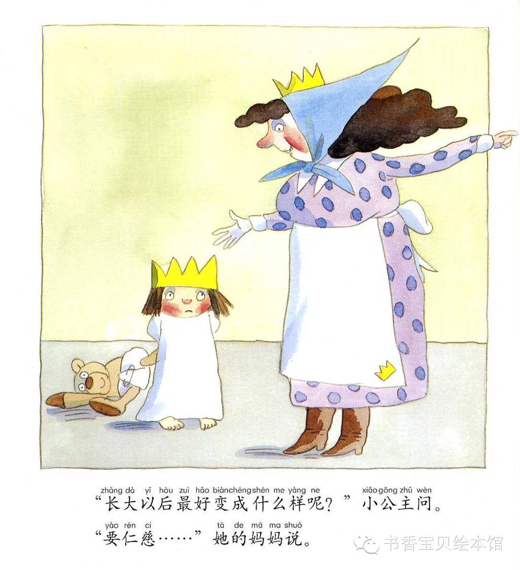 “我可不想变成这样,我最好去问妈妈。”“长大以后最好变成什么样呢?”小公主问。“要仁慈……”她的妈妈说,“就像你的爸爸。”