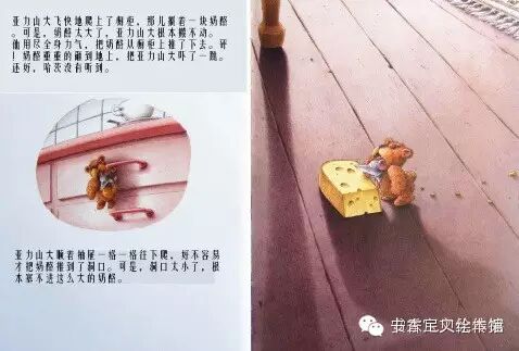 亚力山大飞快地爬上了橱柜,那儿搁着一块奶酪。可是,奶酪太大了,亚力山大根本搬不动。