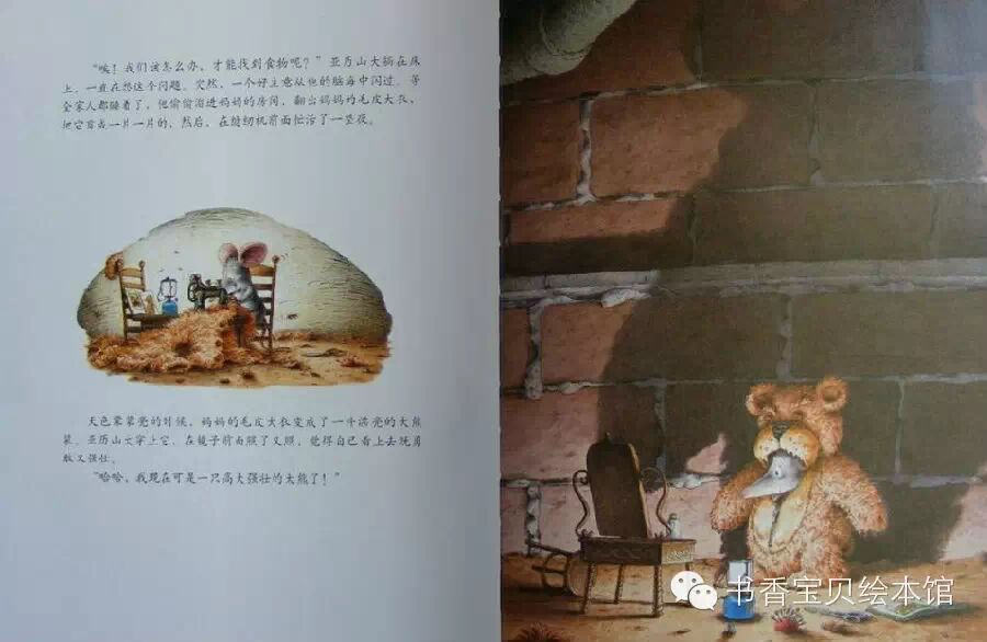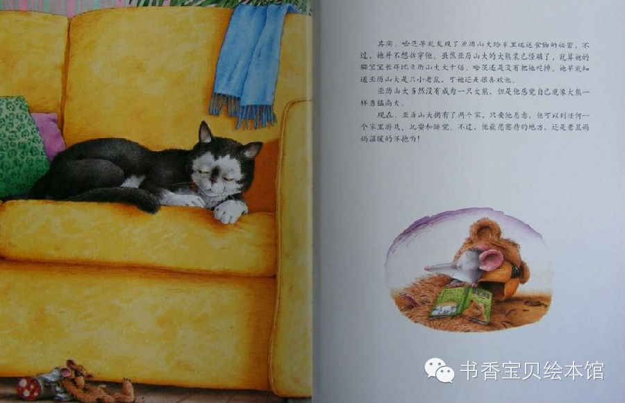 可是,小亚力山大却梦想着:成为一只既强壮又勇敢的大熊,就像他心爱的图画书上画的那样。