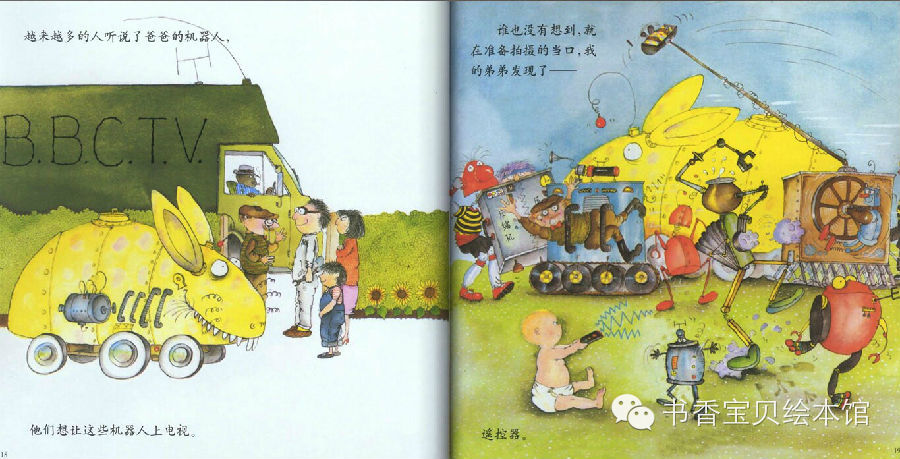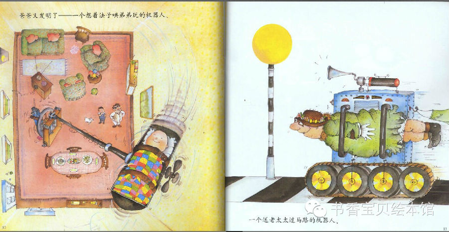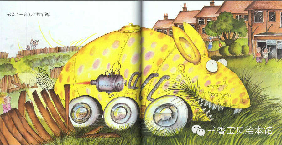 然而,要创造就免不了失败,免不了惹麻烦:比如,兔子割草机会长驱直入别人的领地,撞倒栅栏,破坏草坪;比如,机器人们会在弟弟的遥控下冲上街道,撞断路灯杆,砸碎玻璃,害得爸爸赔了很多钱