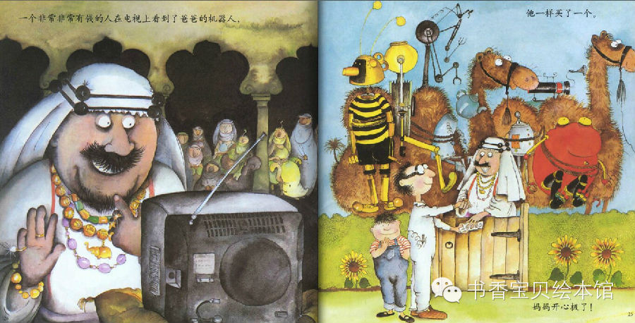 一个非常非常有钱的人在电视上看到了爸爸的机器人。