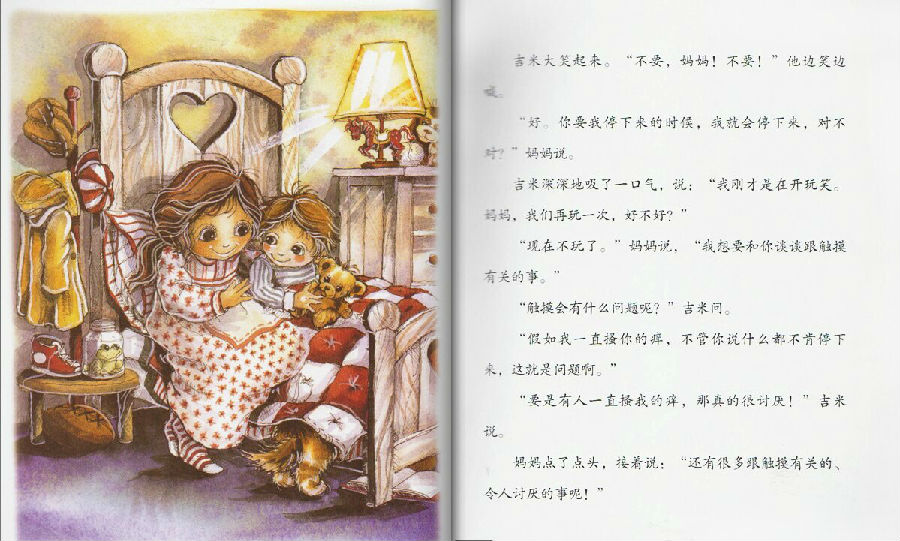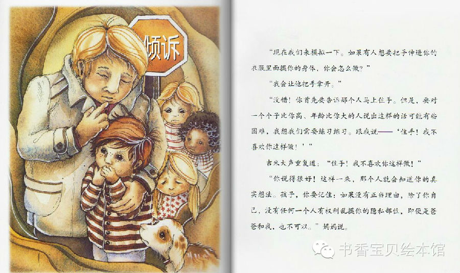 绘本童书《不要随便摸我》说的话题比我的遭遇更难办。看了书名就明白,这是教孩子如何拒绝性侵犯的——坏事——把坏事向孩子解释清楚就不易。话题沉重,但老外作者有本事把事说清楚,并强调了
