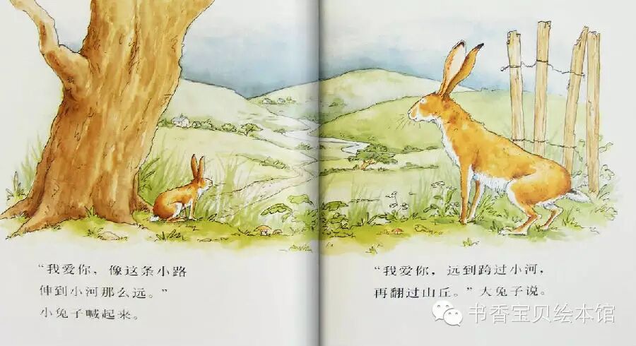 小兔子大叫:我爱你,一直到过了小路,在远远的河那边。