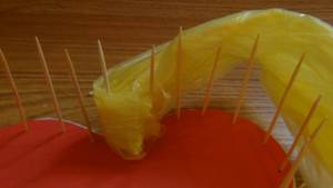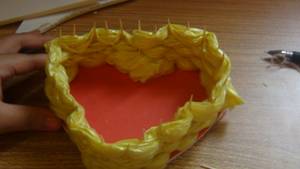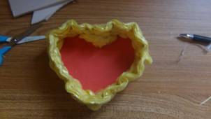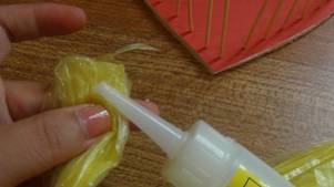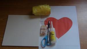 准备:kt板,剪刀,牙签,心形,卷装垃圾袋,胶水。