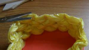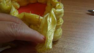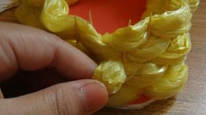把垃圾袋打开,先用胶水固定起头的地方,然后按照一里一外绕着形状填垃圾袋。如下图: