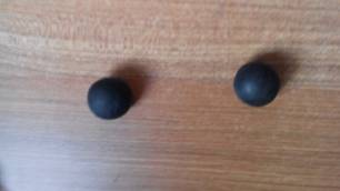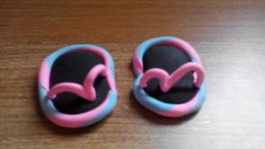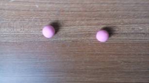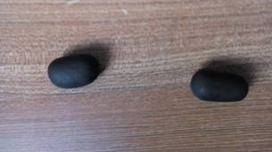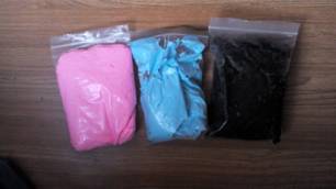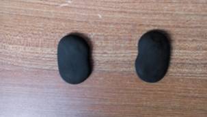 准备好粉色、蓝色和黑色太空泥,先取出两个黑色的太空泥,搓成圆形。