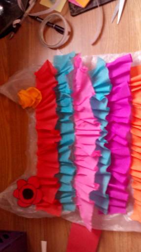 3把皱纹纸压左右出折痕贴上去,孩子做的时候颜色可以自己搭配。