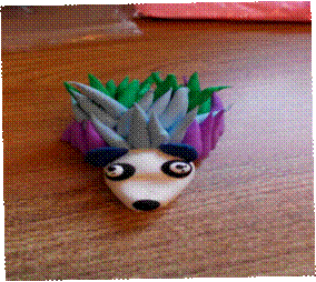 取出蓝色的太空泥,搓成小圆形,放到头上当做耳朵。