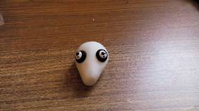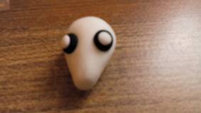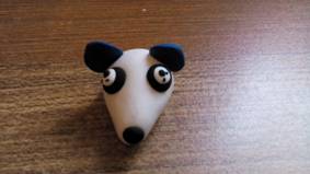 再取出头两倍的白色太空泥,搓圆并压成半圆行,和头连在一起!