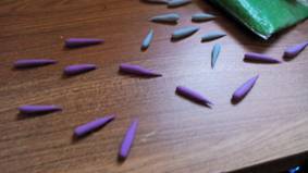 取出其他颜色的太空泥然后分贝搓成长尖的水滴。