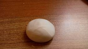 1首先取出白色的太空泥搓成圆形,在搓成胖水滴。