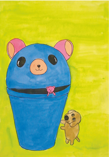 小狗狗也很伤心,他也想我。他在垃圾桶边看到被人遗弃的小熊。他向小熊打听回家的路。