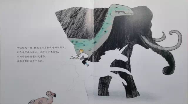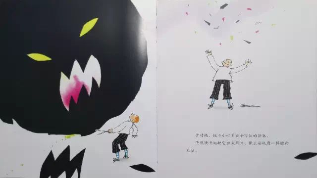 有时候,他不小心会剪出个可怕的怪物,他就快快把它剪成碎片,像五彩纸屑一样撒向天空。