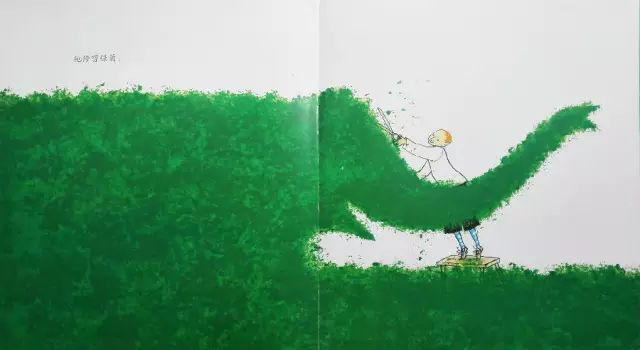 他在森林里剪出各种形状,于是森林就变得狂野而有趣,他可以在里面玩探险。