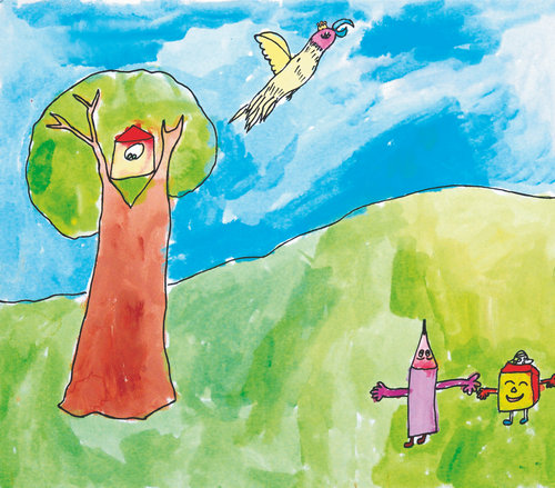 一天,一只漂亮的鹦鹉外出散步的时候遇到了一只铅笔和一块橡皮,他们成为了好朋友。