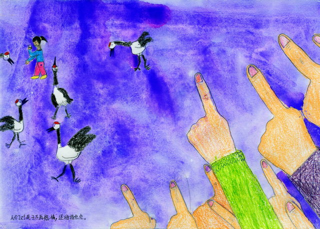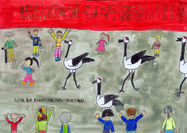 人们很喜欢英子和丹顶鹤,为她们挂起了横副(幅)。
