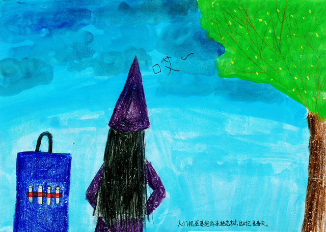 人们把巫婆赶出来(了)桂花树,这时已是春天。