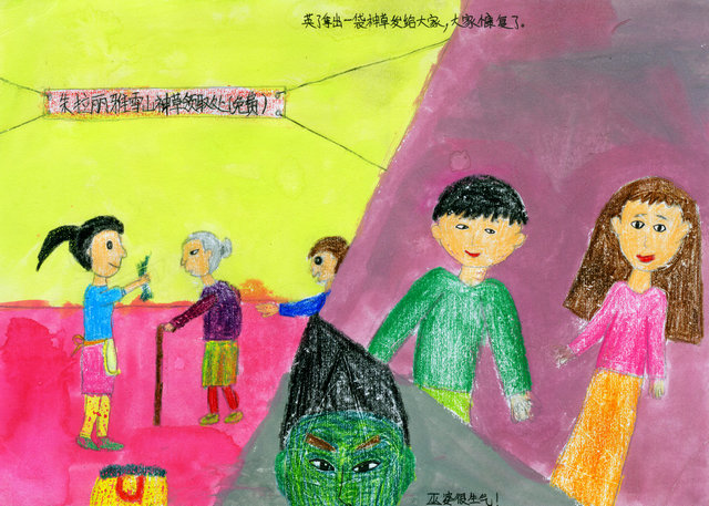 英子拿出一袋神草发给大家,大家慷(康)复了。巫婆很生气!