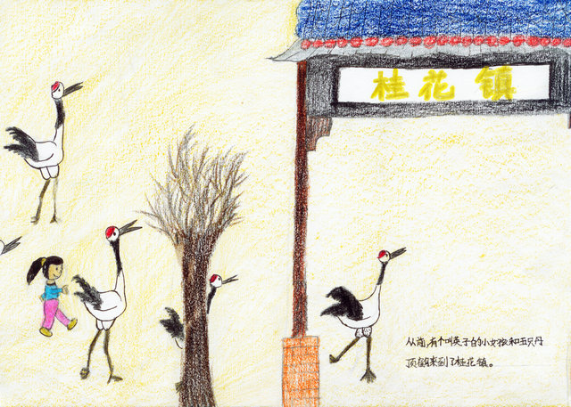 从前,有个叫英子的小女孩和五只丹顶鹤来到了桂花镇。
