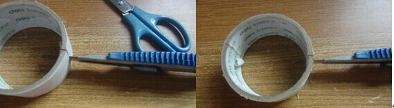用工具刀从上面划出两个凹槽注意不能切断,让家长做。