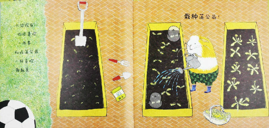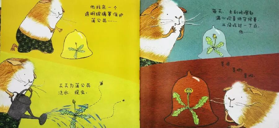 他的爸爸妈妈——吃吃吃夫妇,他的姐姐,他的朋友们都喜欢蒲公英叶。