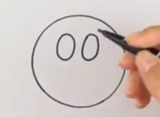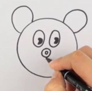 4、在眼睛下方画小圆,并将其内部涂黑留小圆做鼻子,然后在鼻子下面向两边画半圆做嘴唇。