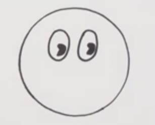 2、在圆内偏上位置画两个椭圆做老鼠的眼眶,并在眼眶内画出眼珠。