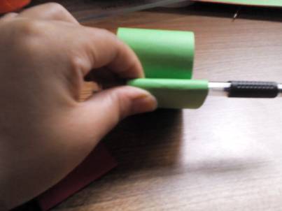 3把剪下来的卡纸进行对折,用牙签在中间通个洞。