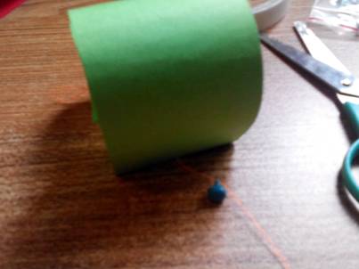 活动准备:1各色卡纸、剪刀、双面胶、牙签、细绳子、小铃铛、笔、尺子