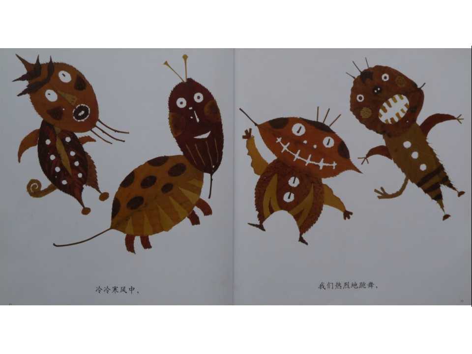 内容简介:沙沙沙,起风了,在冬日寂静的树林里,一群落叶在快乐地跳舞……用实物剪贴的落叶形态各异,表情丰富,像魅惑的精灵,带出作者心中丰盈的诗意。