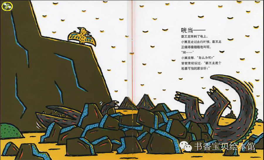 小翼龙吓了一大跳,不由得说:“我、我是霸王龙。”