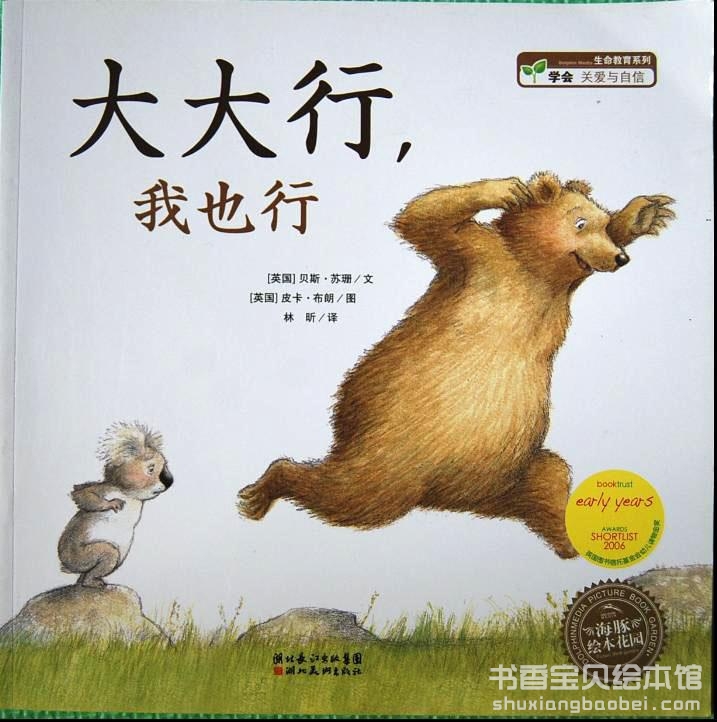 1、观察封面:你看到了谁?猜猜看大熊要去干什么?小熊呢?它在想什么?(感受故事开始对比幽默的特点)