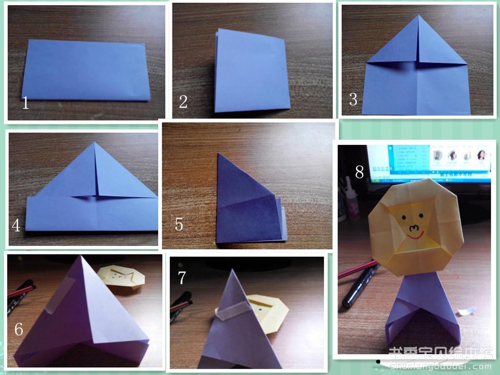 把折好的猩猩头粘贴上,折纸猩猩就完成了!