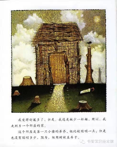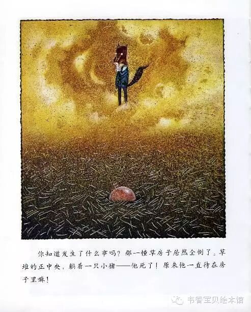 你知道发生什么事了吗?那一幢草房子居然全倒了,草堆的正中央,躺着一只小猪——他死了!原来他一直待在房子里嘛!