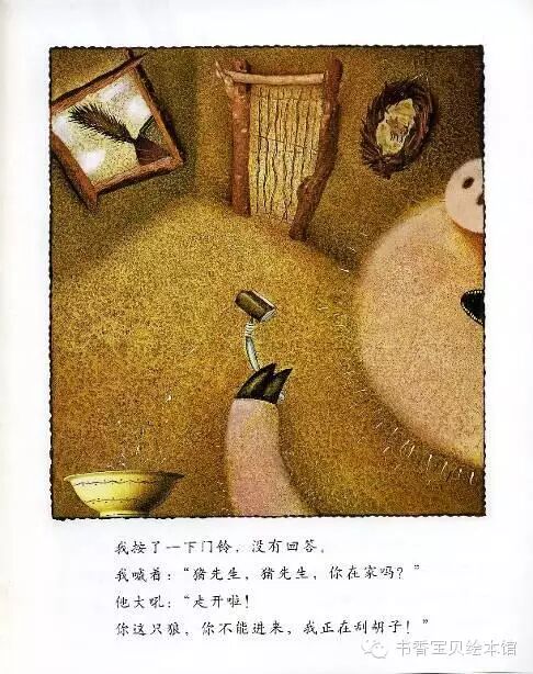 他大吼:“走开啦!你这只狼,你不能进来,我正在刮胡子!”