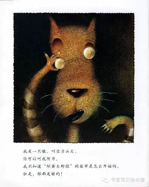 我是一只狼,叫亚力山大,你可以叫我阿力。我不知道“坏蛋大野狼”的故事是怎么开始的,但是,那都是错的!