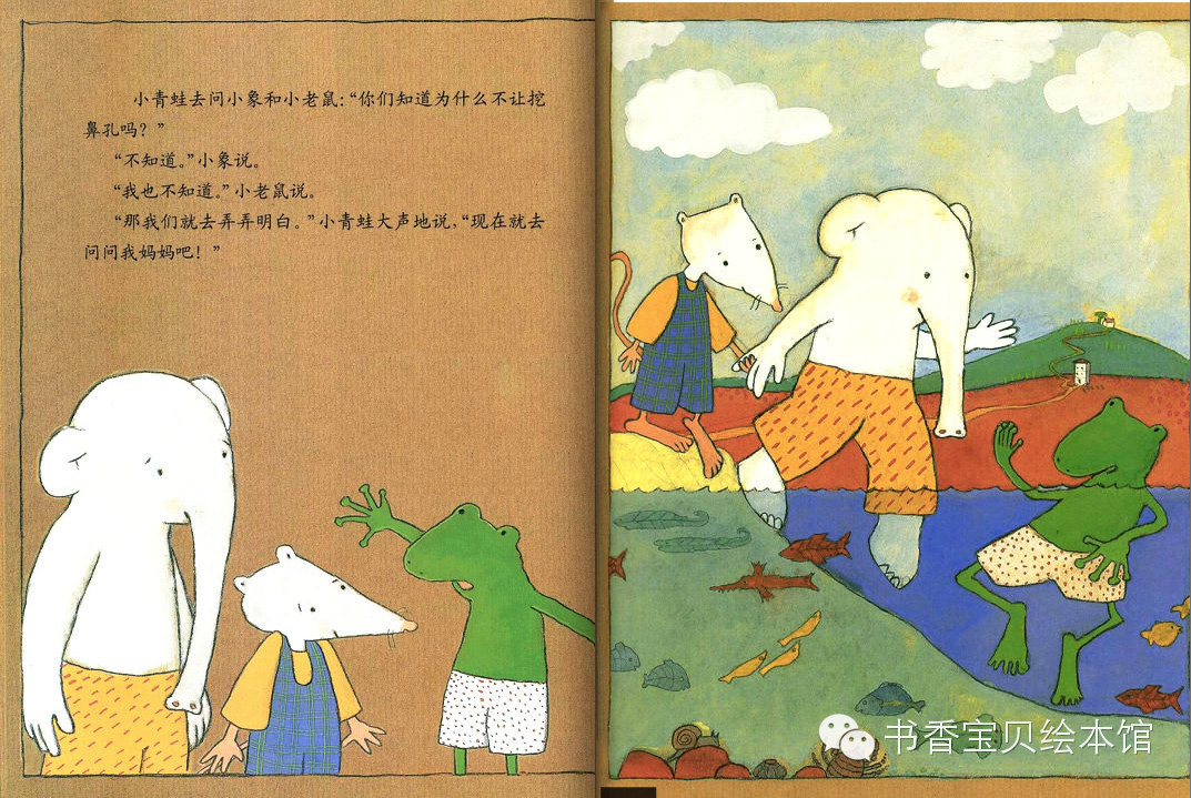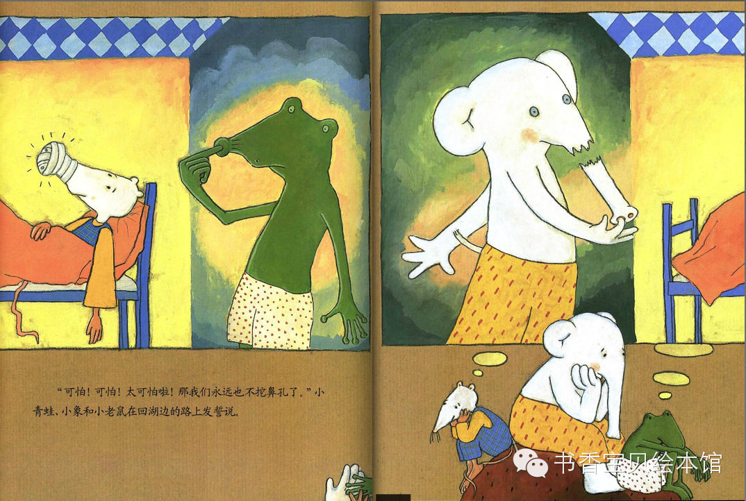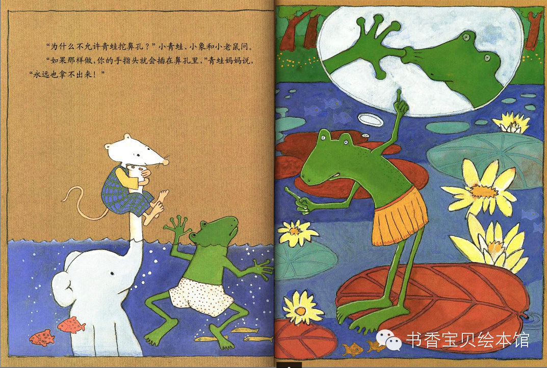 只有青蛙不敢。他妈妈说:“不许挖鼻孔。”为什么呢?为什么他们后来又挖鼻孔了呢?