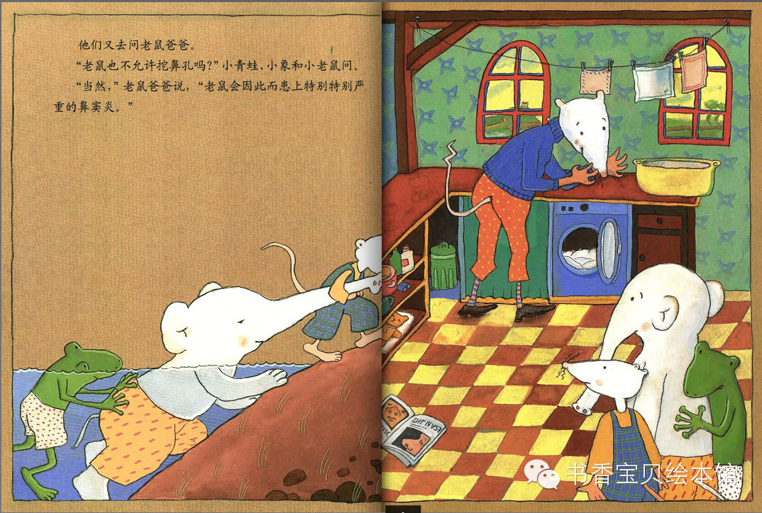 “挖鼻孔真舒服。”象说。邻家的孩子老鼠也觉得这样特别舒服。